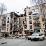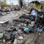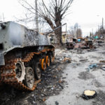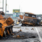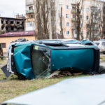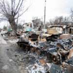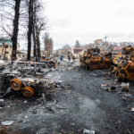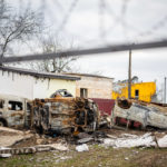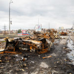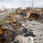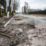 Mein Ziel an diesem Tag war die Region um Butscha. Aus den Medienberichten kannte man diese Stadt durch das grauenvolle Massaker, bei dem rund 300 Zivilisten getötet wurden. Auch die Zerstörung in dem Ort und den umliegenden Dörfern sollte enorm sein. Ich wollte mir ein Bild davon machen, wie die Lage vor Ort tatsächlich ist und den Medien entsprechendes Foto- und Videomaterial zuarbeiten, sowie aktuelle Informationen recherchieren. Als erstes gelangte ich in den Ort Irpin, westlich von Kiew. Schon am ersten großen Checkpoint boten sich mir unglaubliche Bilder von einer völlig zerbombten Tankstelle und einem komplett zerstörten Supermarkt. Dieses Bild setzte sich durch den gesamten Ort fort. Hinzu kamen Autos am Straßenrand, deren Windschutzscheibe übersäht war von Einschusslöchern. Über manche Autos waren scheinbar Panzer drübergefahren, manche waren von Granaten getroffen worden. Dabei handelte sich fast nur um zivile PKW, zumindest sahen die Fahrzeuge so aus. Wer am Ende drin saß, das konnte man nicht mehr in Erfahrung bringen.