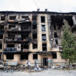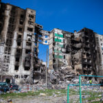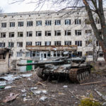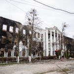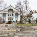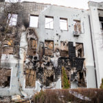 Nach diesen unfassbaren Eindrücken wollte ich weiterfahren nach Butscha. Auf dem Weg dorthin kam ich noch am Theater von Irpin vorbei. Eigentlich ein sehr schöne Gebäude mit einer gepflegten Grünanlage davor, alles sehr prunkvoll und mit Liebe zum Detail gestaltet. Doch nun, nach den Angriffen durch die Russen, ist der schöne Komplex nahezu vollkommen zerstört. Im Dach des Theatersaals klaffte ein riesiges Loch, Mauern waren eingestürzt. Direkt gegenüber sah man wieder ein mehrgeschossiges Wohnhaus und andere Gebäude, die schwer getroffen und stark beschädigt bzw. zerstört wurden. Und auch ein ukrainischer Panzer stand mitten in diesem Wohngebiet, augenscheinlich zerstört und verlassen.