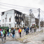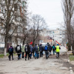 Im Zentrum von Irpin angekommen bot sich mir plötzlich ein völlig unerwartetes Bild. Auf einmal liefen auf der Straße mehr als 100 Menschen mit Schaufeln, Besen und Werkzeugen. Es handelte sich dabei sowohl um Männer, als auch Frauen. Alles scheinbar Freiwillige, die zum Aufräumen gekommen waren. Ein kurzes Gespräch mit einem Helfer bestätigte meine Vermutung. Man hatte sich getroffen, um die Straßen freizuräumen und die Schäden so gut es ging zu beseitigen. An einem zentralen Punkt im Ort konnte man sich als Helfer registrieren und bekam dort auch Werkzeug. Von dort aus wurde auch koordiniert, welche Helfer an welchem Platz innerhalb des Ortes aufräumten. Alles wirkte sehr koordiniert, auch schwere Baumaschinen wurden von hier aus losgeschickt zu den Schwerpunkten.
