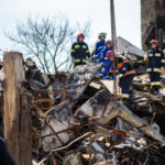 Am nächsten Tag fuhr ich nach Borodjanka. Dieser Ort wurde kurz zuvor bekannt, da es dort schwerste Bombardierungen durch die Russen gegeben haben muss. Fast alle Wohnhäuser in dem Ort sind beschädigt oder zerstört worden. Besonders auffällig waren zwei große Wohnblöcke, die von Raketen oder Luftminen getroffen sein mussten. Es gab riesige Löcher in den Gebäuden, teilweise waren sie eingestürzt. Feuerwehrleute und Rettungskräfte suchten mit bloßen Händen in den Trümmern nach Vermissten. Ein anderer Reporter erzählte mir, dass sich zum Zeitpunkt des Angriffs in dem Einen Haus 25, in dem anderen 8 Menschen aufgehalten haben sollten. Man vermutete die Leichen aller Vermissten unter den Trümmern in den Kellern der Häuser. Gefunden wurde zu dem Zeitpunkt als ich dort war aber noch niemand. Zerstört war außerdem auch das Polizeirevier des Ortes. Und auch der Feuerwachturm wurde durchschossen. Mit Feuerwehrmann Ivan konnte ich ein Interview führen. Er erzählt mir auch, dass der Feuerwehrchef des nahegelegenen Ortes Hostomel verschleppt worden sei, seine Leiche hätte man noch nicht gefunden.