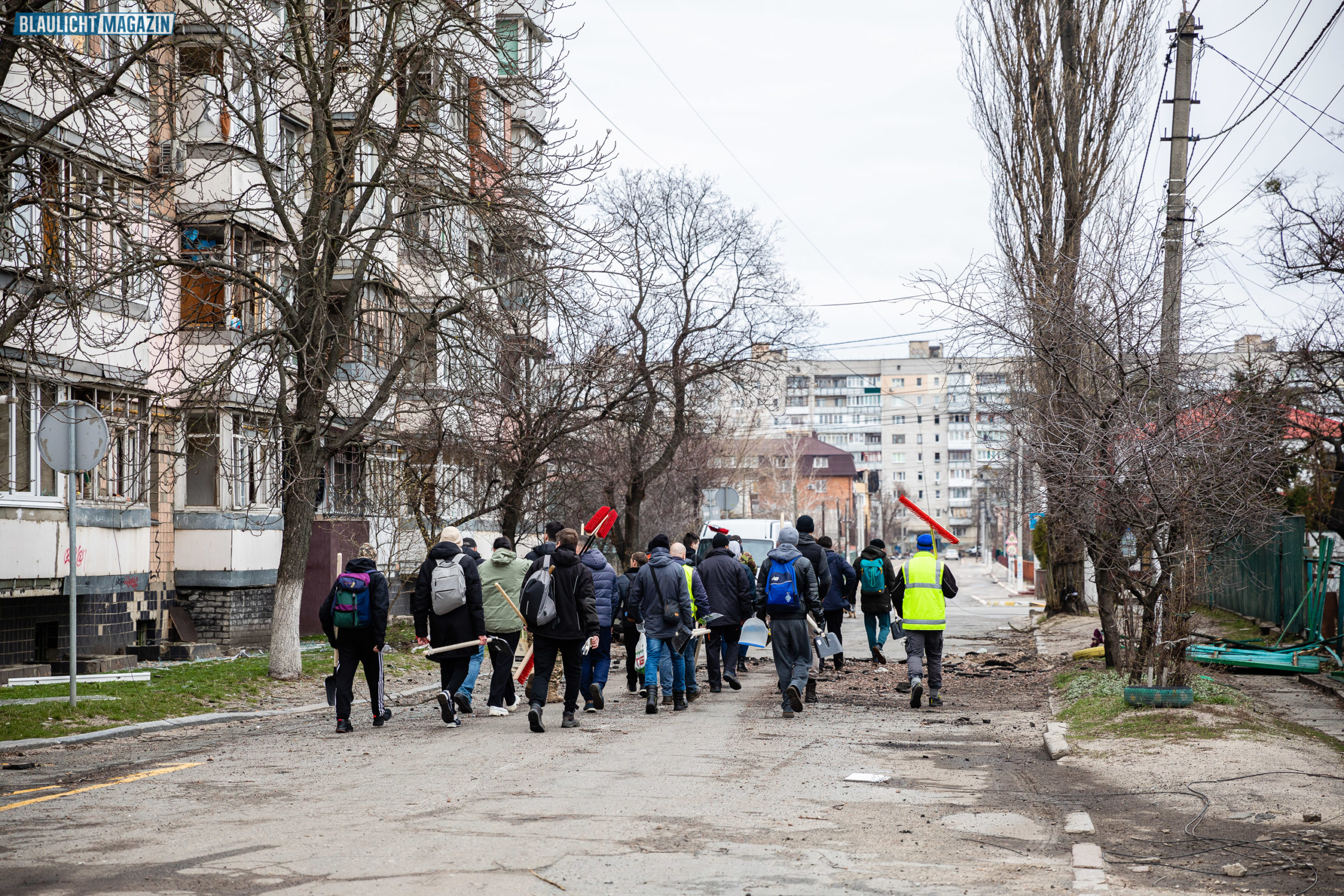 Viele freiwillige Helfer waren in Irpin unterwegs, um ihre Stadt wieder aufzuräumen. Foto: Rico Löb