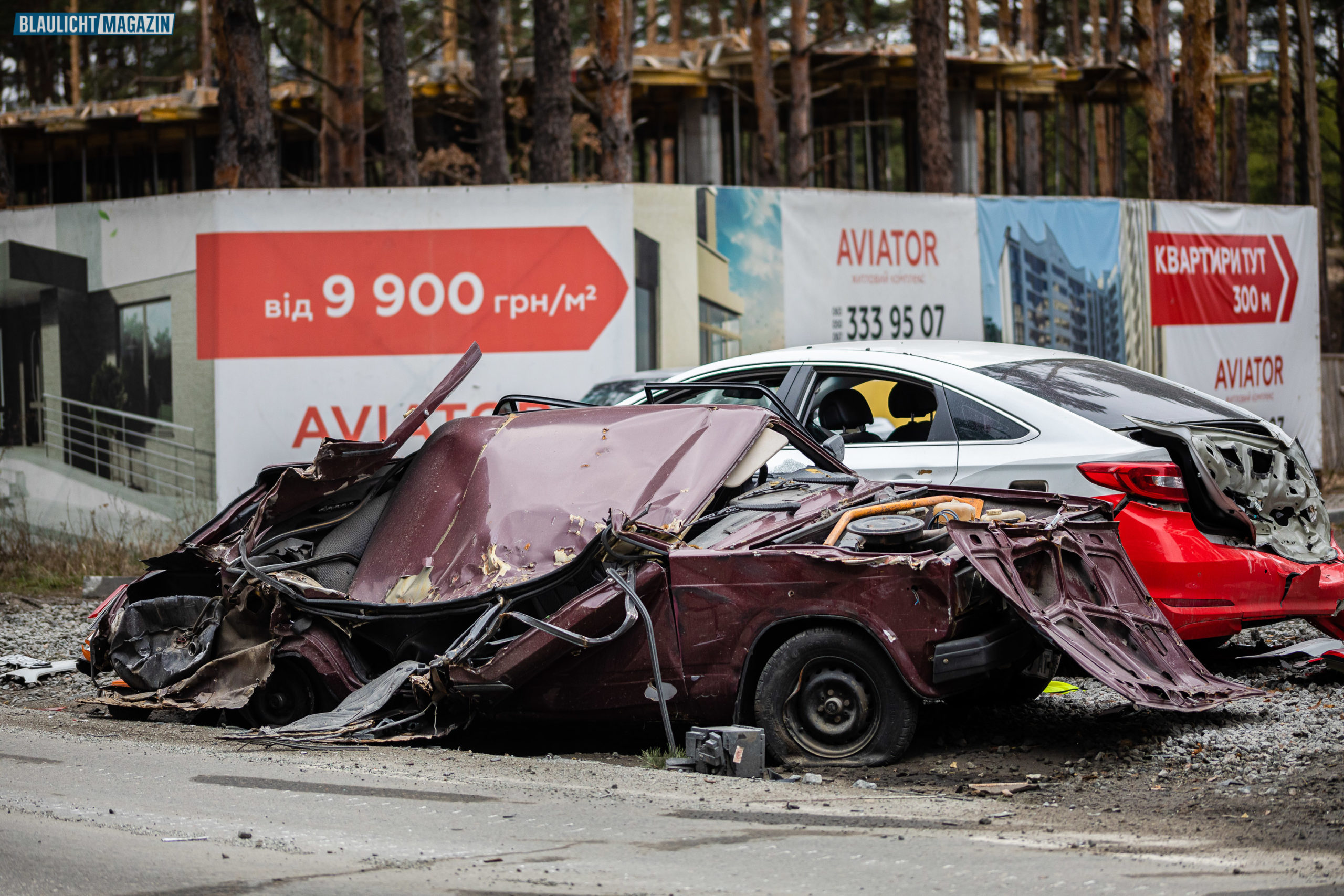 Überall am Straßenrand fand man solche zerstörten PKW vor, meistens war die Windschutzscheibe mit Einschusslöchern übersäht. Foto: Rico Löb