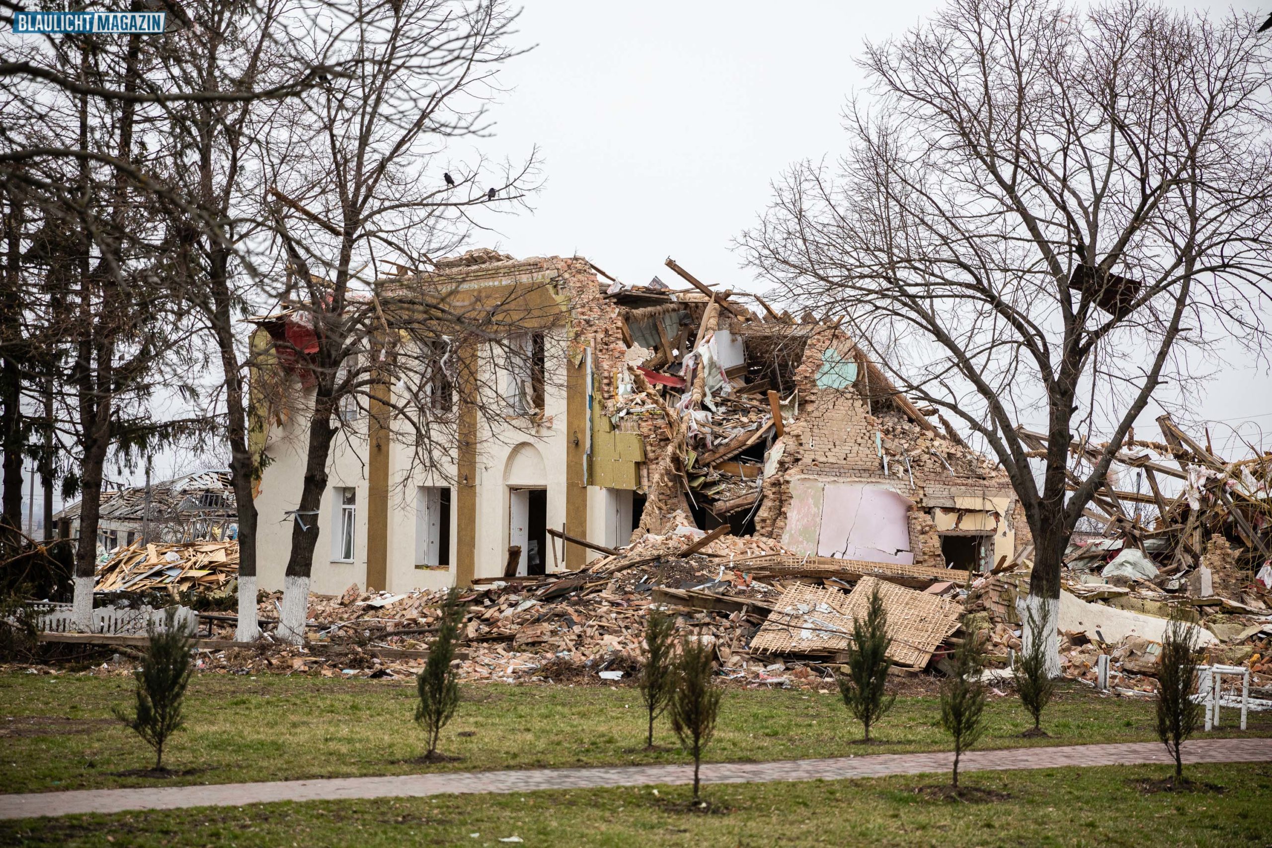 Hier schlug die Rakete in einem Wohnhaus ein. In einem Dorf südlich von Kiew. Foto: Rico Löb